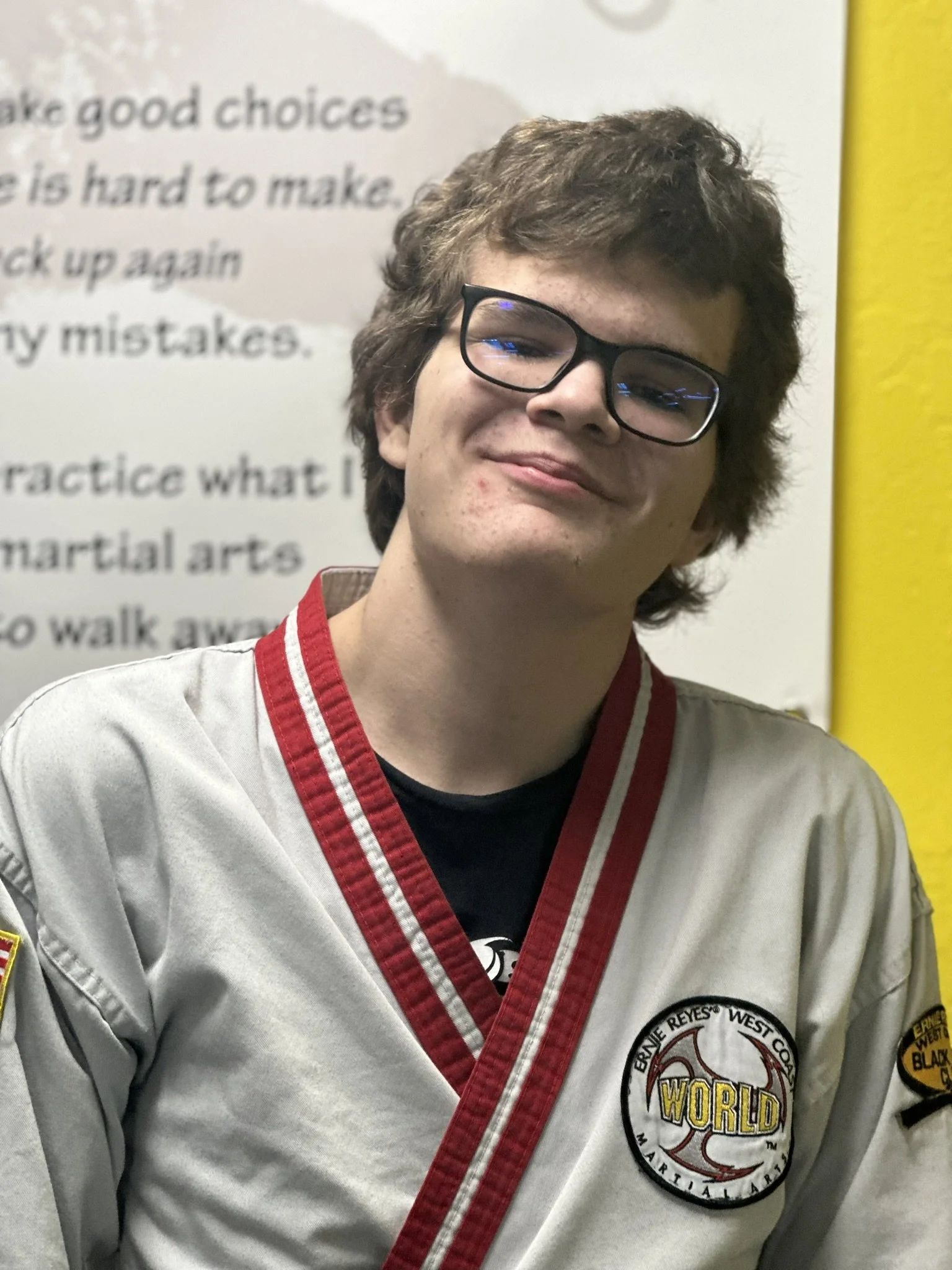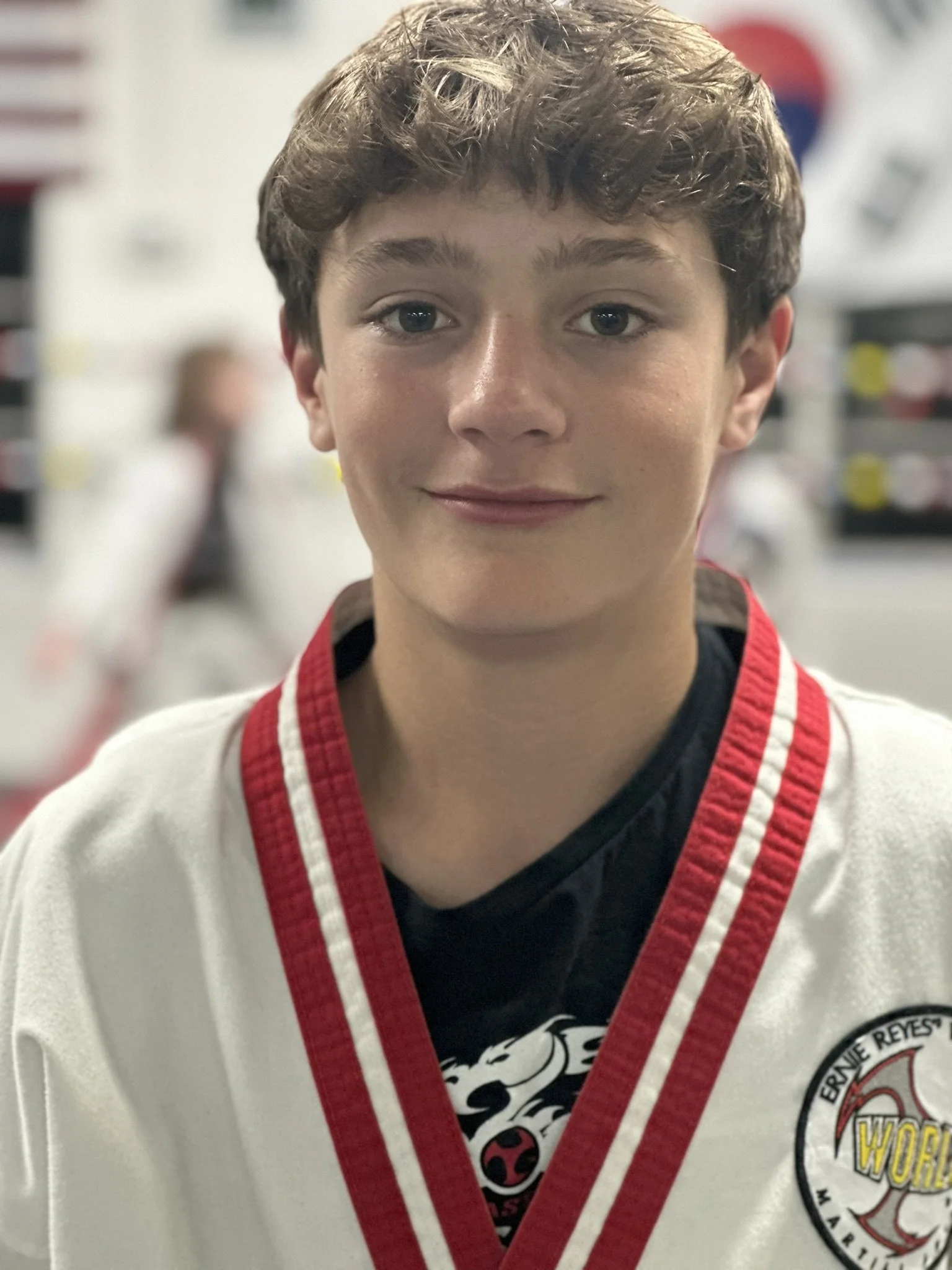 Oliver always has a smile on his face and intensity in his techniques. He began Martial Arts at Caughlin Preschool at age 4 and is testing with the crew in May ‘26 for Black Belt. He is an incredible assistant instructor and truly has that “7th sense” to know what needs to be done around the Studio. His forms are on point, his sparring is fierce, and he is so respectful we are proud to call him ours.