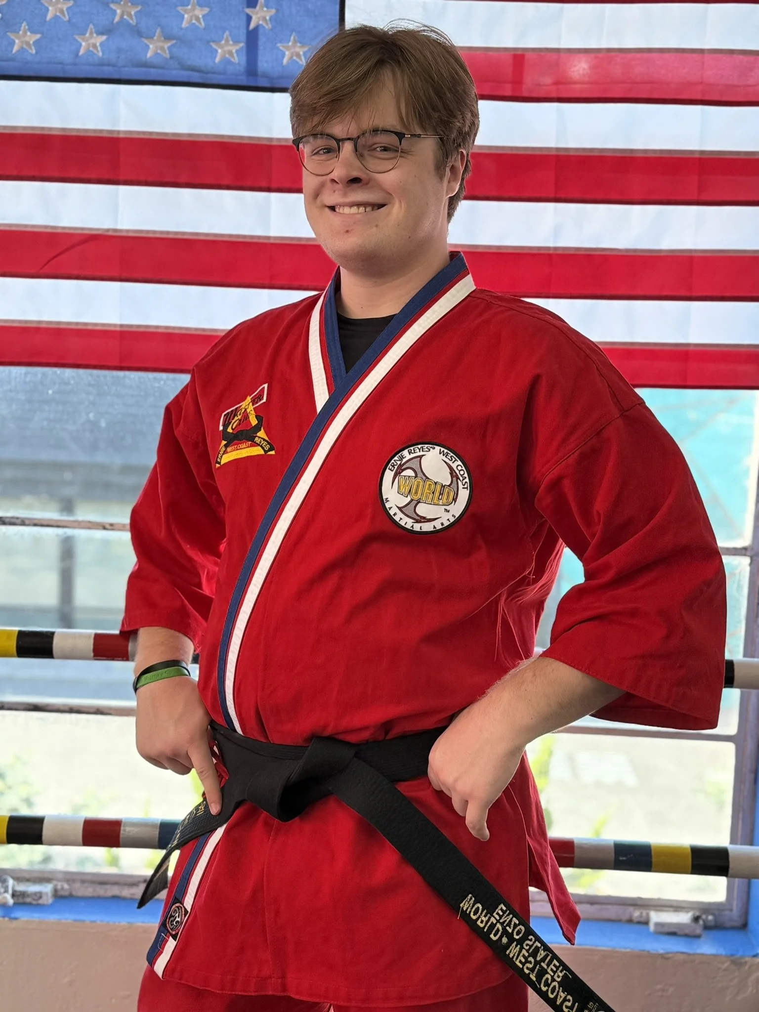 CGN Cameron is a fan favorite and has been training since he was 4! He is working towards his 2nd degree Black Belt in May ‘26 and kicks higher than a New York Skyscraper! He is a phenomenal Martial Artist, Student, Instructor, and Teammate. We all love and adore him.